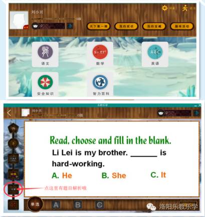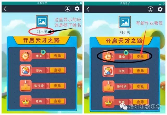 注:本模块中的“作业”必须用孩子账号(s手机号码)登录答题才有答题记录及排行哦~