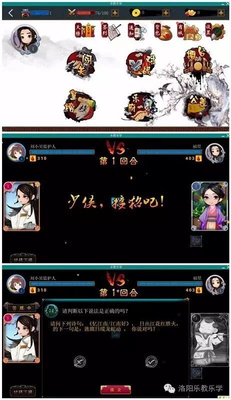 本模块以游戏对擂的方式考察孩子对于古诗词的掌握情况,还可以与朋友、学校的同学进行比赛。