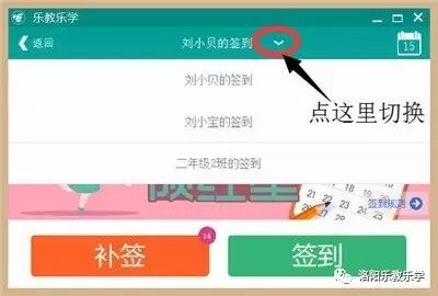 注:如果您有多个孩子,建议您在平台主界面的中签到,在子目录中可以切换到另一个孩子签到的界面。