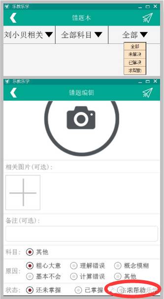 b.可以分科目、错题原因、是否掌握进行分类收录;