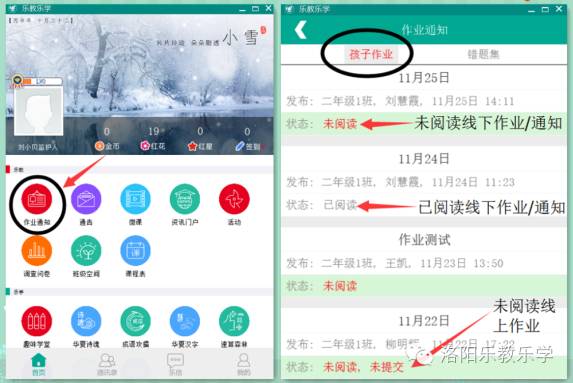 a可以查看与自己号码绑定孩子所在班级的通知、作业;